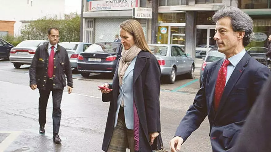 Dos y media de la tarde. Chispea en Avilés. Un BMW color negro aprovecha un hueco libre en la zona azul de la avenida de los Telares y de su parte trasera sale la Infanta doña Elena acompañada de Fernando Garrido, director general del Instituto de Acción Social de la Fundación Mapfre, jefe, amigo y, según algunos medios de la prensa rosa, nueva relación sentimental de la Duquesa de Lugo. Los dos, junto a otras once personas ligadas a la empresa aseguradora, tenían mesa reservada en la sidrería Casa Lin.