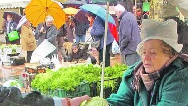 Puesto de productos de la huerta en un mercado asturiano. / archivo
