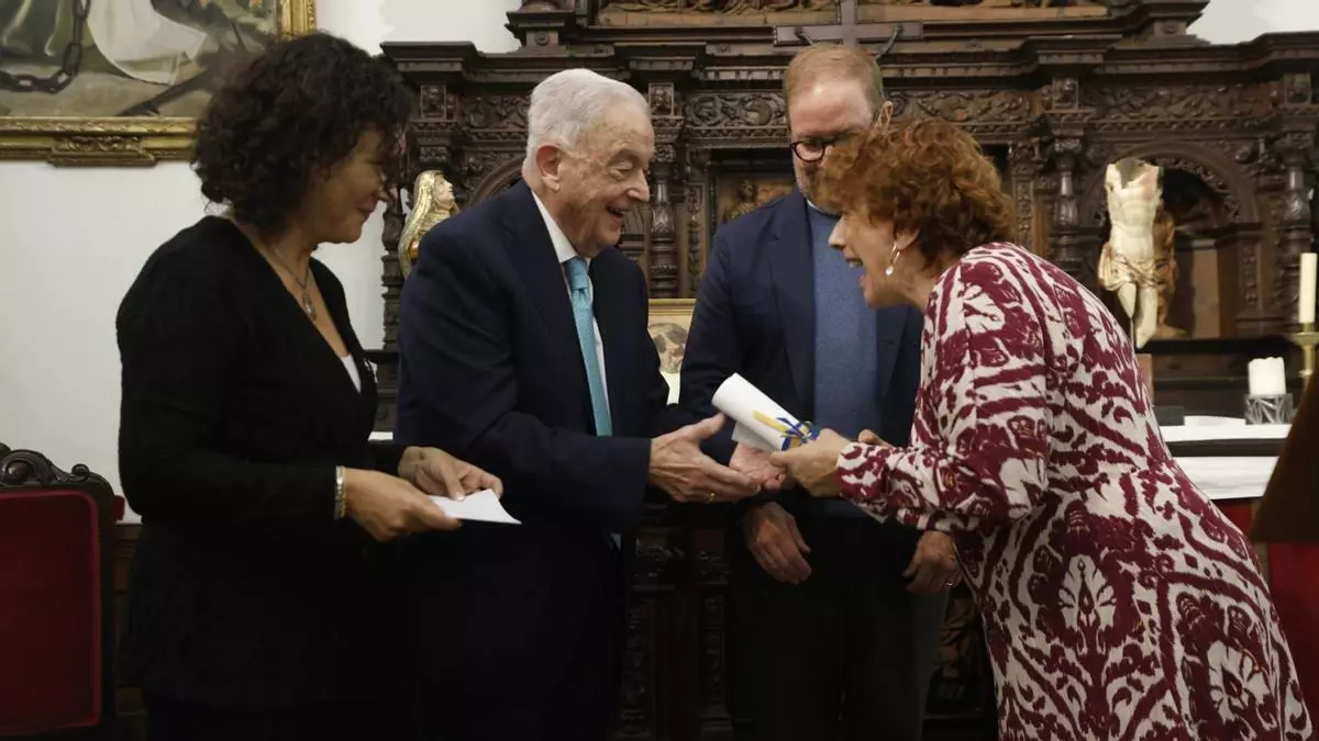 Ladis García, ayer, recibiendo el premio de manos de Carlos Casanueva, entre Irene Díaz, a la izquierda, y Francisco Casanueva.