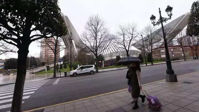 Una mujer y una niña pasan por delante del Palacio de Congresos de Oviedo, que en 2026 albergará un centro educativo de Ciencias de la Salud de la Universidad Alfonso X el Sabio. | LUISMA MURIAS