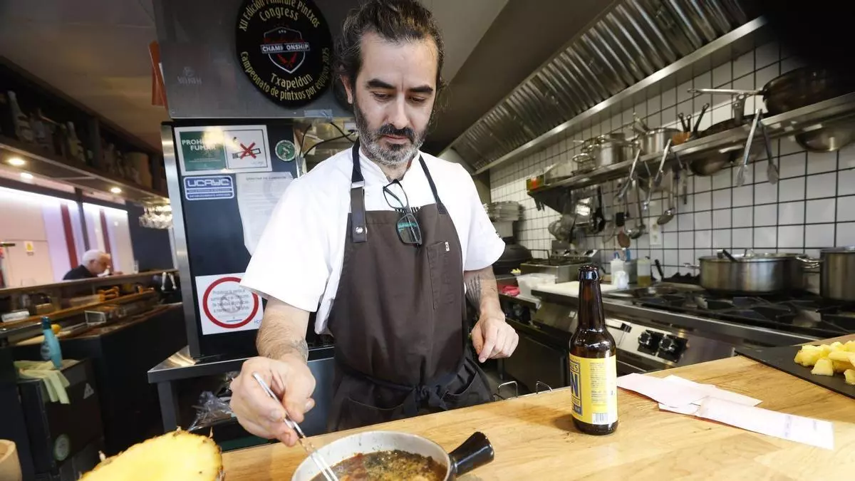 Mariano Mier, cocinero de uno de los establecimientos participantes en las jornadas gastronómicas “Homenaje a los guisos de invierno” en Avilés. / Miki López