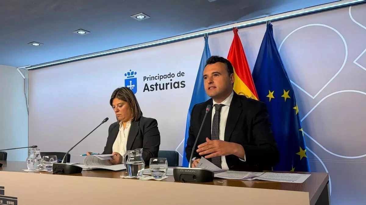 Gimena Llamedo, vicepresidenta del Gobierno, y Guillermo Peláez, consejero y portavoz, en la rueda de prensa posterior al Consejo de Gobierno de esta mañana. / LNE