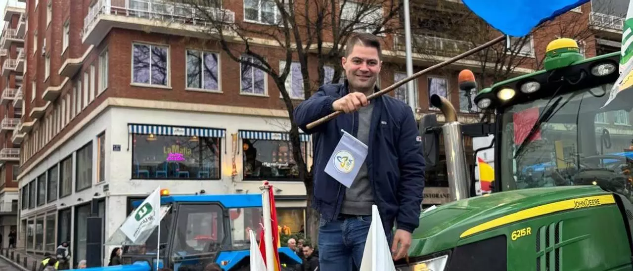 Borja Fernández, este miércoles en Madrid, durante la protesta contra el acuerdo de la UE con Mercosur y los recortes de la PAC. / LNE