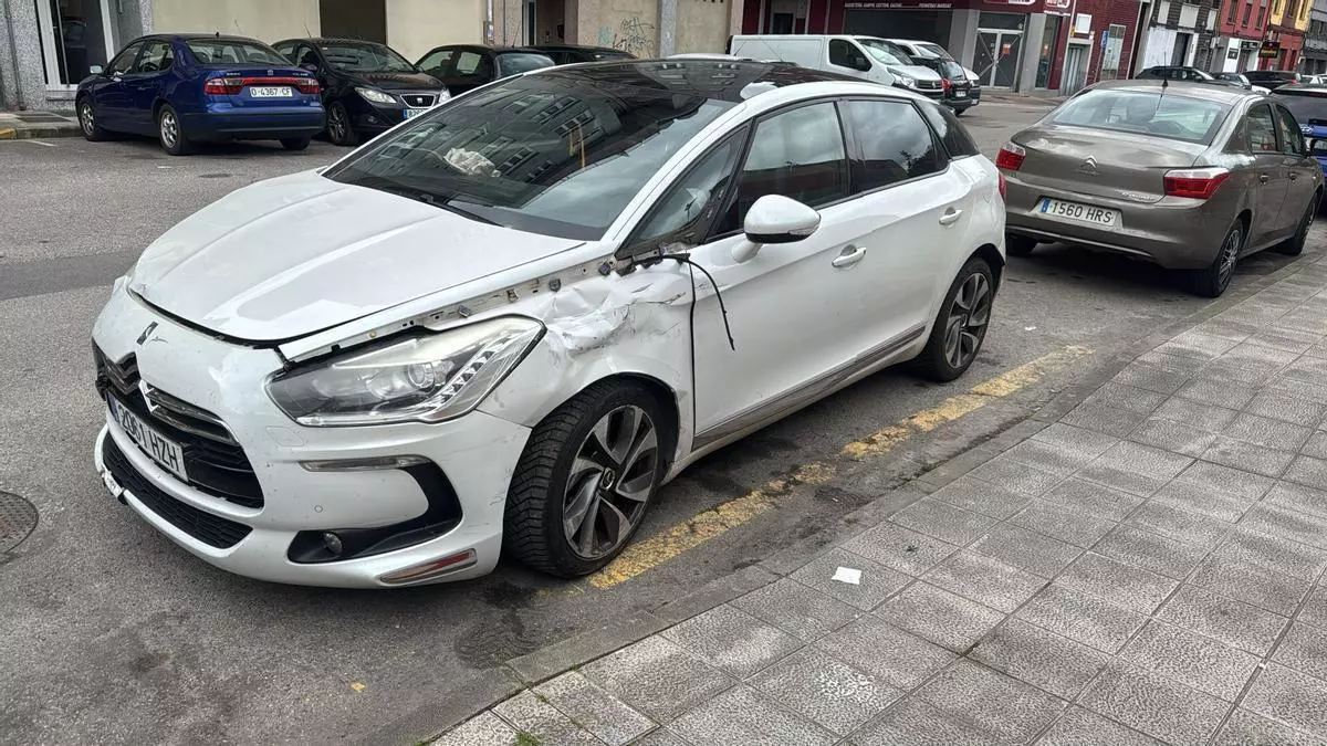El vehículo causante del siniestro, estacionado en Mieres. / LNE