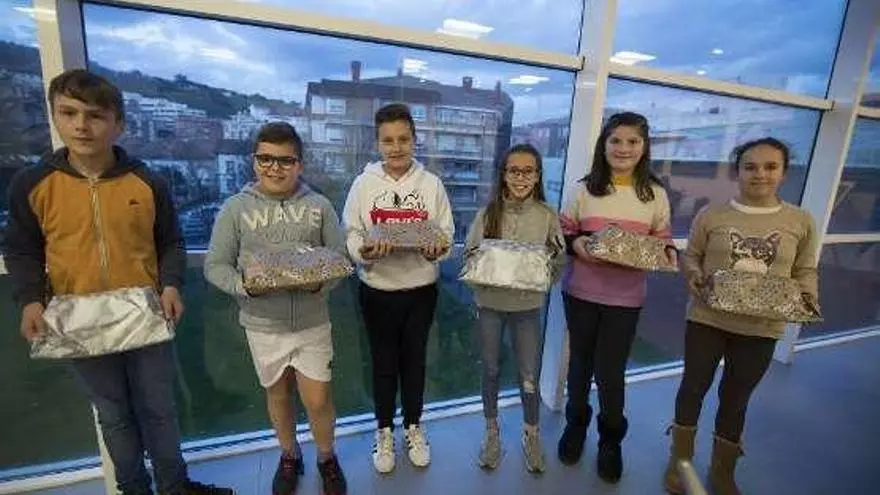 Los seis ganadores del concurso de relatos de Navidad, en castellano y en asturiano, reciben material escolar