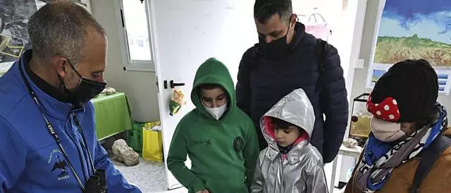 Alejandro Peláez, ayer, en el Aula de la Naturaleza de Zeluán con varios visitantes. | R. Solís / M. MANCISIDOR
