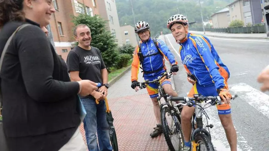 Los primeros en estrenar la nueva ruta en bici fueron los miembros de la peña cicloturista "Poco a Poco". La lluvia, que hizo acto de presencia pasadas las once de la mañana, disuadió a muchos de participar en esta cita que estaba abierta a toda la población. Esta inclemencia meteorológica también dio al traste con parte de los actos organizados, como ocurrió con la presentación de dos bicicletas eléctricas cedidas por la Fundación Asturiana de la Energía (FAEN). "Tan sólo ha podido probarla un vecino, porque después empezó a llover y lo tuvimos que dejar", comentó ayer una de los técnicos del Ayuntamiento que había acudido al acto para explicar el manejo de estos vehículos. La bicicleta también fue protagonista ayer en el nuevo hospital Álvarez Buylla, en Santullano, que estrenó un aparcamiento para este tipo de vehículos. Eso sí, todavía queda que se habilite un carril para poder acceder al centro hospitalario en bici, una idea que ya ronda en la cabeza de la concejala Miriam García.