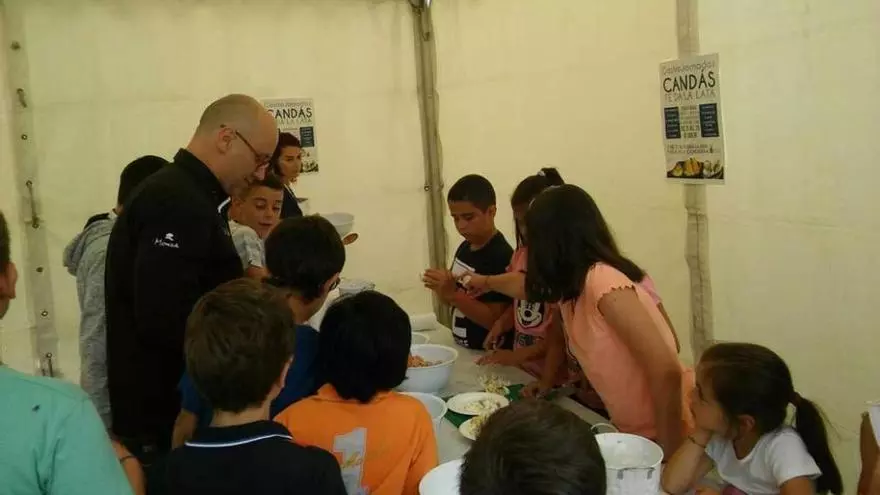 La empresa Gustatio impartió este fin de semana un taller infantil de cocina dentro del programa de la XXVII Feria de la Conserva de Candás, en el que los participantes -en la imagen- prepararon varios platos con productos envasados habitualmente en latas, como el paté de merluza y la crema de oricios, informa L. BLANCO.