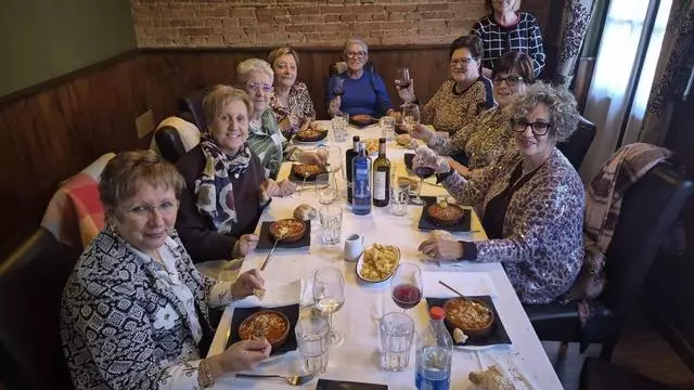 Un grupo de amigas degustando los callos en Noreña / L. P.