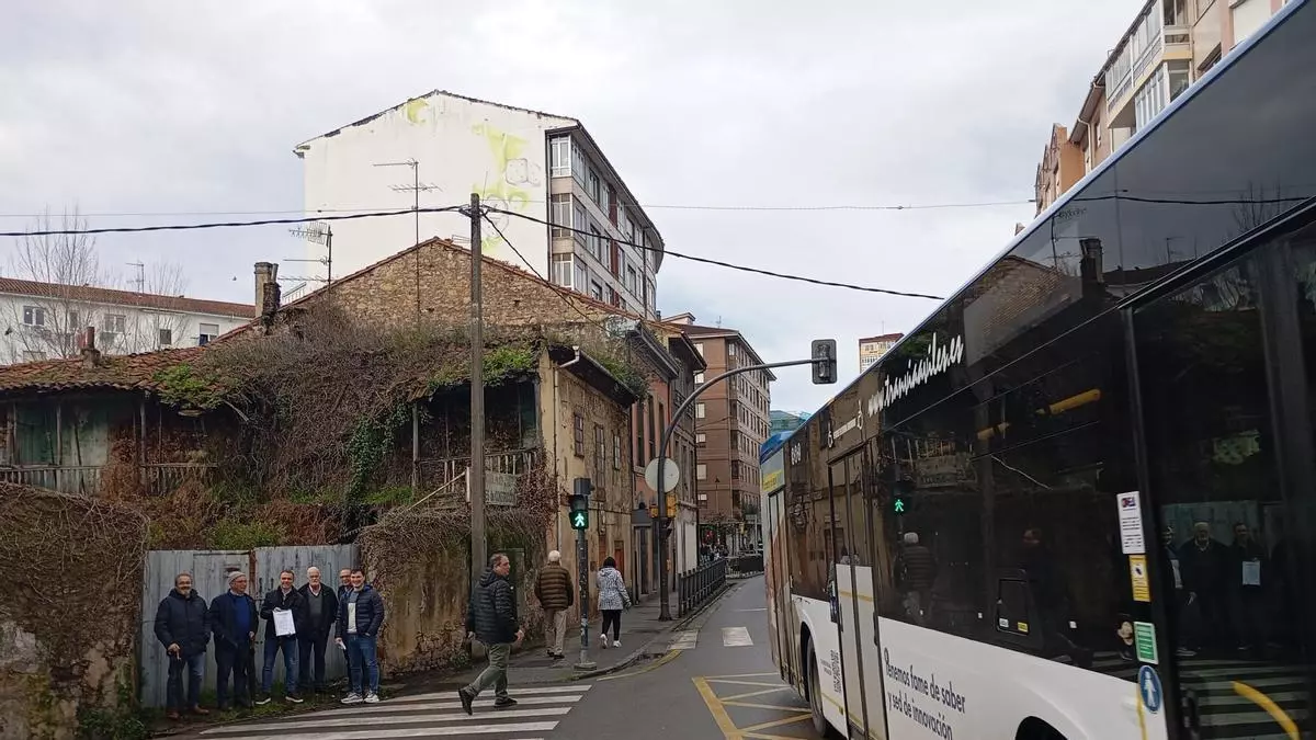 Representantes municipales y vecinales, ante la Casa de Postas de Las Vegas, donde estará ubicada la futura rotonda de la avenida del Principado. / I. G.