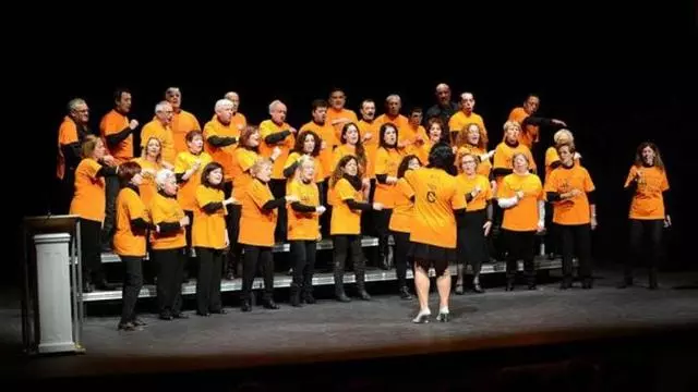 El Orfeón de Mieres dio la bienvenida a la primavera con la organización de un concierto vocal en el Auditorio Teodoro Cuesta. Los coros de la Escuela de la Música, en sus formaciones adulta e infantil, fueron las agrupaciones invitadas y como muestra la imagen salieron al escenario con sus reivindicativas camisetas en defensa del Conservatorio. También actuó el Orfeón, que organizó este concierto como muestra de agradecimiento a todos los que apoyan su labor.