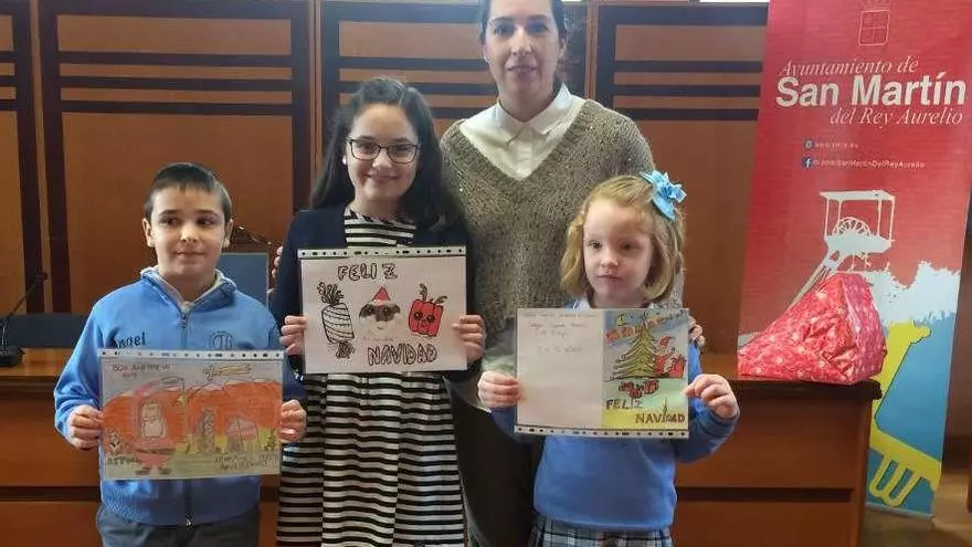 La alumna Carla Martínez Alonso, del colegio El Bosquín de El Entrego, es la ganadora del Concurso Escolar de Postales organizado por el Ayuntamiento de San Martín del Rey Aurelio. Su ilustración navideña hace alusión a la rica tradición gastronómica del municipio. El dibujo ha sido elegido, además, como postal institucional del Consistorio para felicitar las inminentes fiestas navideñas. La postal de Martínez Alonso, en la categoría de 9 a 12 años, se eligió entre centenares de dibujos presentados desde todos los colegios del municipio. También han sido premiados los dibujos realizados por Ángel Prieto Gutiérrez, del Colegio Sagrada Familia (El Entrego), en la categoría de 6 a 8 años; y Elena Suárez González, también del Colegio Sagrada Familia, en el apartado de 3 a 5 años.