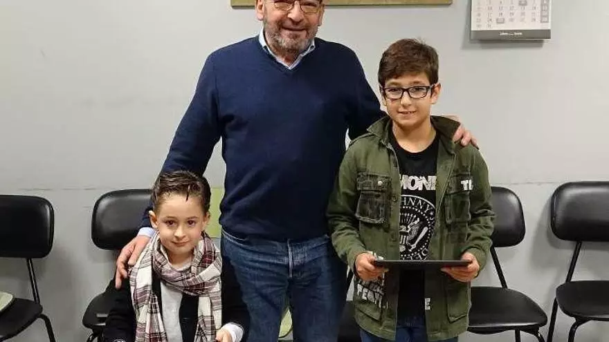 Los locales del Coro "San Andrés-Sergio Domingo" acogieron la entrega de los premios de la II Bienal de Postales navideñas organizada por la asociación musical. Con más de 150 obras presentadas por los alumnos de El Entregpo los premios fueron para Telmo Roces, de 5 años, y para Enol Orviz, de 10 años -ambos en la imagen-. El jurado estuvo compuesto por Juan Fernando Rodríguez, "Juanfer", y Macrina García, "Macri".