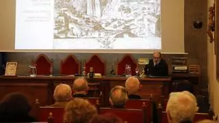 En su conferencia de ingreso en el Ridea, "Historia arquitectónica del santuario y el real sitio de Covadonga", Antón Capitel acompañó sus palabras con proyecciones de ilustraciones, grabados, planos y cuadros, con las que mostró la evolución arquitectónica del espacio y la relación entre el conjunto basilical y su entorno natural.