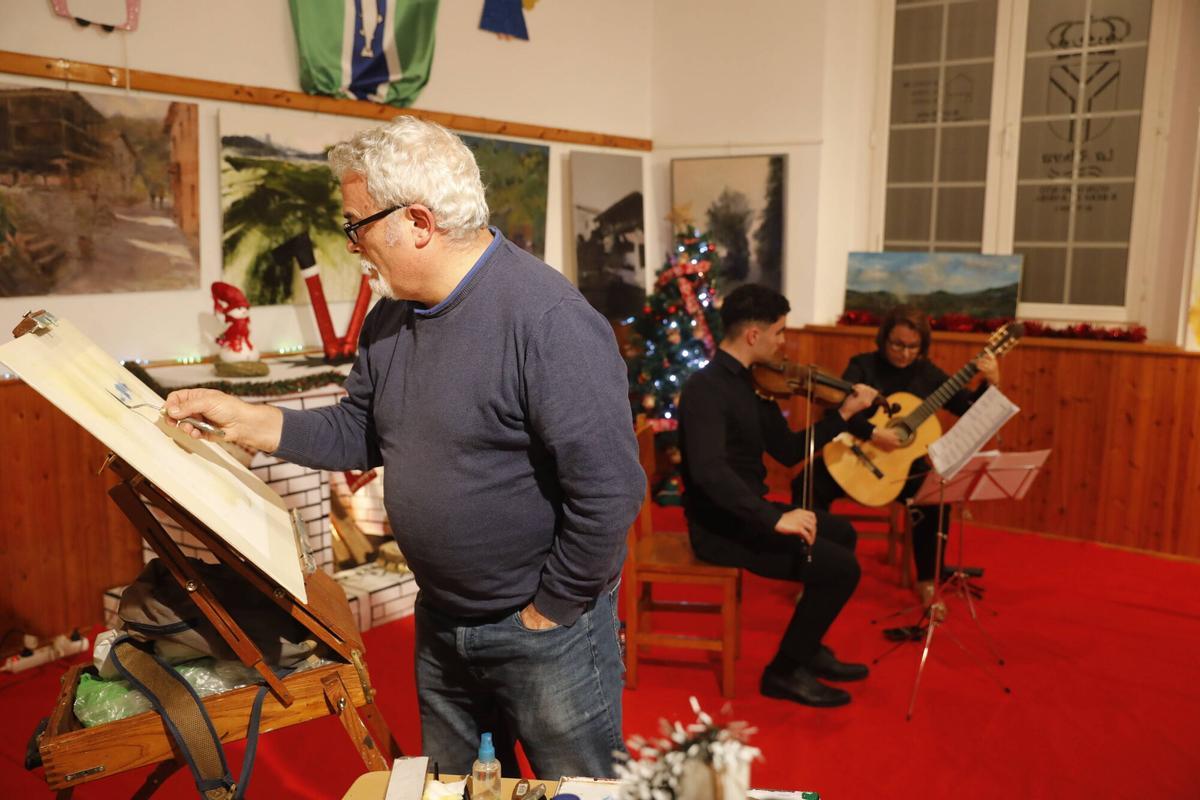 Entre notas musicales y matices cromáticos. Así despidió Bueño, en Ribera de Arriba, el año 2024, con un concierto de Navidad en el que los instrumentos de cuerda y las artes pictóricas fueron protagonistas. El recital, que se celebró el 30 de diciembre a las siete y media de la tarde en la Casa Cultural de la localidad riberana, tuvo como título "Artsónica".