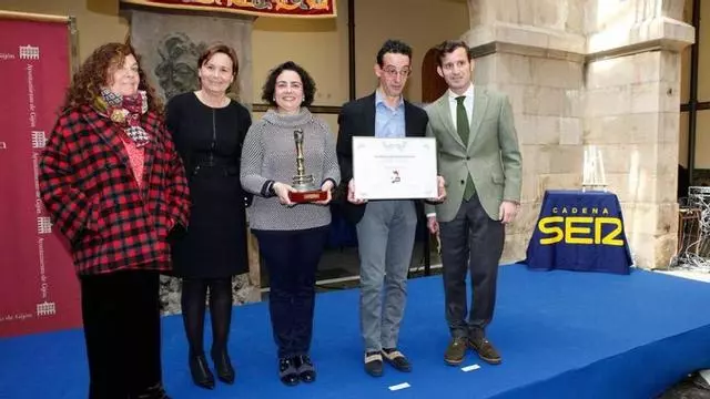 Por la izquierda, Guillermina Caso, jefa de informativos de Ser Gijón; Carmen Moriyón, Arancha Fernández, Manuel José Iglesias y Pablo González, tras la entrega del premio "Gijón Ciudad Abierta". / JUAN PLAZA