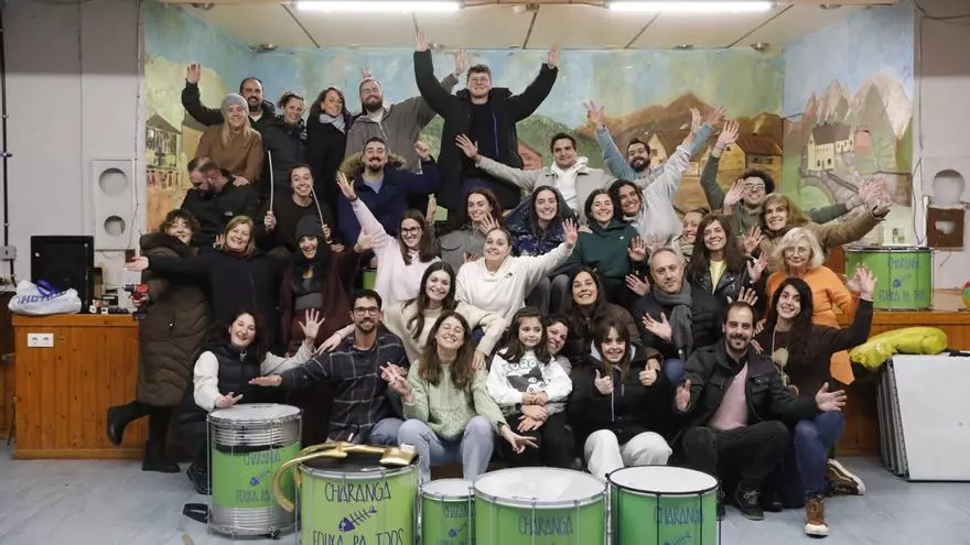 La charanga cuenta con 53 componentes, una cifra que se consolida de manera progresiva desde sus inicios. González sitúa el arranque en 2005 y recuerda que en 2008 eran 25. "Fue creciendo gradualmente", relata el líder de la charanga. El último año el número se mantiene estable y tan solo son dos integrantes más que el año pasado debido a bajas debido a trabajo o estudios fuera de Asturias. González, de igual forma, subraya el reto organizativo que lleva aparejado el coordinar a más de medio centenar de personas: "Cuanta más gente, más hay que pensar para que todo el mundo tenga algo que hacer en el escenario".