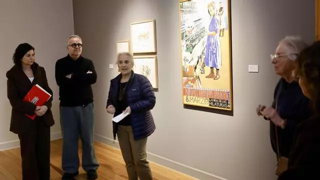 Entre las obras expuestas está el emblemático cartel de Mabel Lavandera "La niña de las hilaturas", realizado en 1987 para el Día Internacional de la Mujer Trabajadora, además de diversas piezas de Elena Rato, María Álvarez y María Gimeno