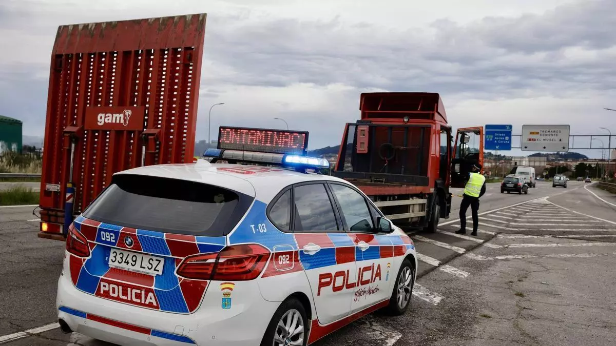 Agentes paran a un camión en Príncipe de Asturias ante una alerta por contaminación. / Juan Plaza