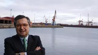Laureano Lourido en El Musel, cuando era presidente del Puerto, con la terminal de minerales Ebhisa al fondo a la derecha. / ANGEL GONZALEZ