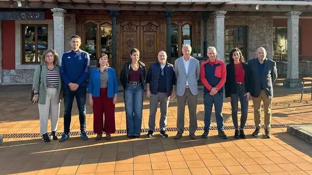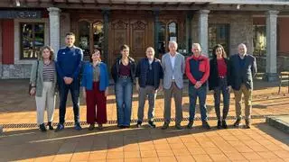 Por la izquierda, Susana López, Miguel López Cedrón, Susana García, Beatriz Colunga, José Julio Velasco, Andrés Suárez, Carlos Álvarez, Rocío Estévez y Belisario Camblor. / P. A.
