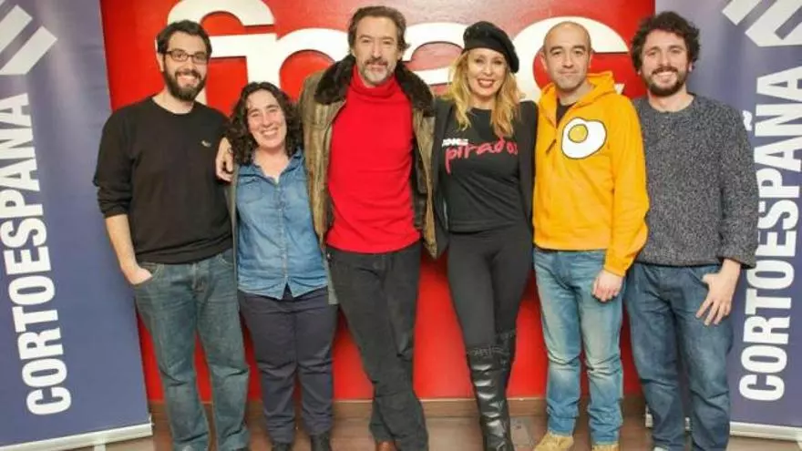 Diego Ruiz, Arantxa Echevarria, Ginés García Millán, Miriam Díaz-Aroca, Edu Cardoso y Samuel Rodríguez, en la presentación de "CortoEspaña". / Cortoespaña
