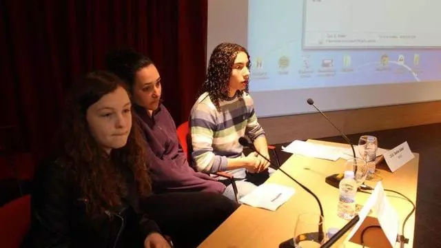Por la izquierda, Esther Infanzón, Salomé Fernández y Gilberto Cernuda, ayer, durante su exposición. / A. M. Serrano