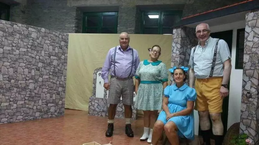 "Estamos en casa y nos gustaría llenar. Vemos mucho interés y ya hay gente que nos está pidiendo entradas por anticipado", precisa Emilio López, presidente de la Asociación Cultural "El Cioyo". El colectivo estrenará en Castropol la obra "Esto era unha vez", de José Ramón Oliva. La función, que ya representaron en cinco ocasiones fuera del concejo, rememora la infancia que vivieron las generaciones nacidas entre los años cuarenta y cincuenta del siglo pasado. "Ahora los niños están pegados a una consola o a un ordenador pero antes se jugaba con cualquier cosa, de una tabla de madera hacías un camión", precisa López.