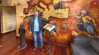 Benjamín Alba ante el mural que recoge la historia de García Fernández de la Plaza y el duelo frente a Barbarroja. / D. Álvarez