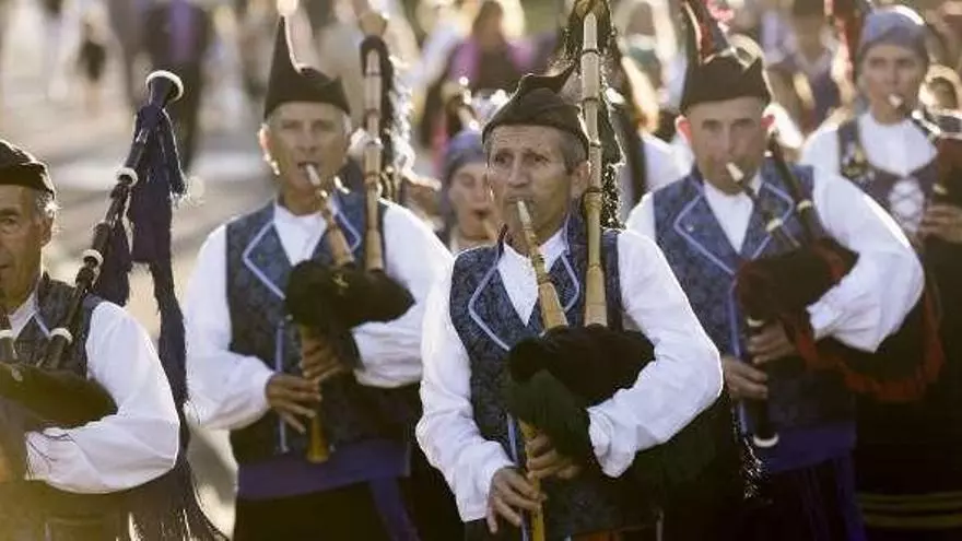 La banda de gaitas del Centro Asturiano, en el club de campo. / IRMA COLLÍN
