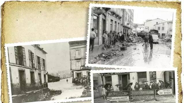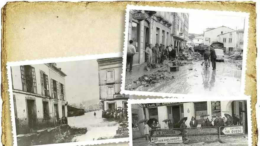 Calles de Vegadeo anegadas por una riada en 1969.