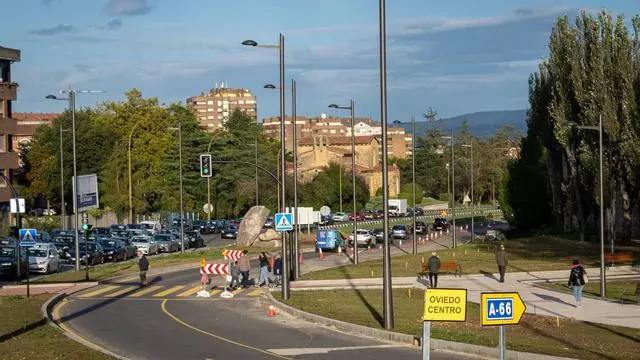 El Bulevar de Santullano durante las obras las obras de la glorieta ya finalizadas. / Diego Fernández / LNE