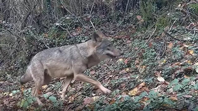 Un lobo captado por una cámara de fototrampero, a plena luz del día, en Puerto. / J. A.