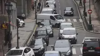Un atasco en Ciudad Naranco / MIKI LOPEZ / LNE