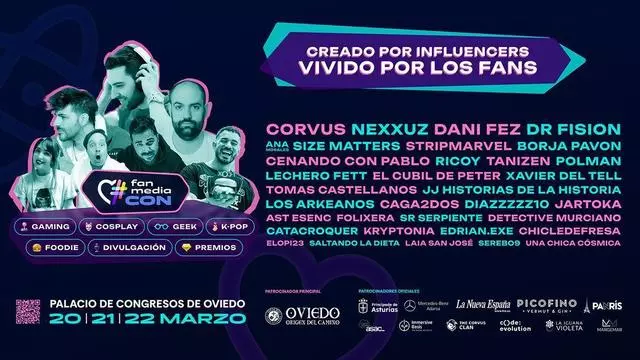 Del 20 al 22 de marzo, el Palacio de Exposiciones y Congresos Ciudad de Oviedo acoge la primera edición de FanMedia Con, un evento diseñado por creadores y vivido por los fans.