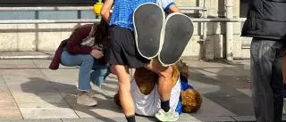 Fue en la carrera del centenario, un éxito rotundo para todos… menos para el bueno de "Garra", al que el recorrido se convirtió en un Angliru. No ayudó que saliera sin desayunar (¡hay que meter hidratos, amigo!) ni el calor dentro de ese peluche XXL. Según mis fuentes, "Garra" tiró de orgullo, valor y él mismo para llegar a la meta, pero ya lo advertía Perico Delgado: cuando aparece el tío del mazo, solo puedes llamar al coche de equipo, con luces y sirena en este caso.