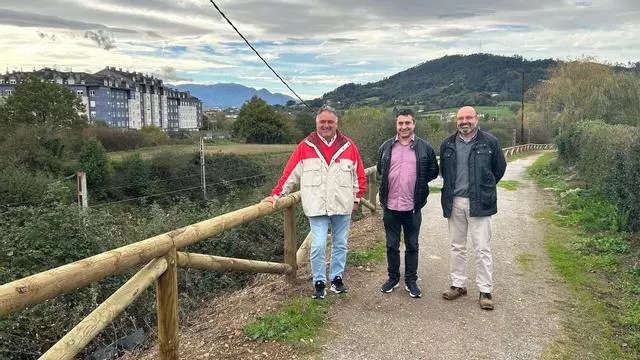Por la izquierda, los concejales Alejandro Villa y Javier Rodríguez, con el técnico municipal José Antonio Martínez, en uno de los tramos de la senda. / A. S.