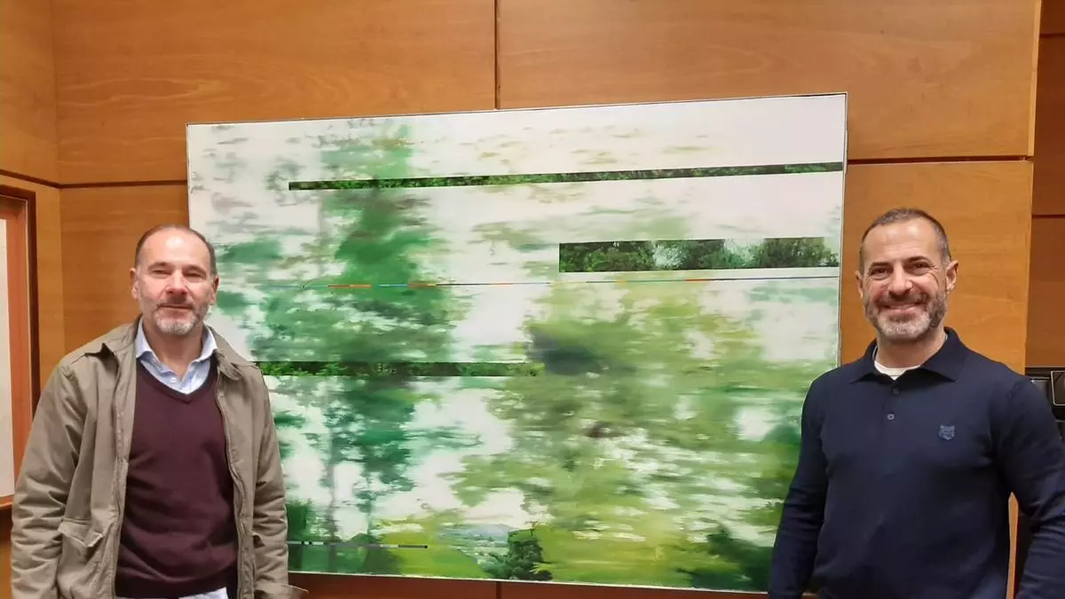 Un Ayuntamiento con mucho arte: "Cepi" recibe al pintor Rafael Rollón, autor del cuadro que decora sus comparecencias públicas