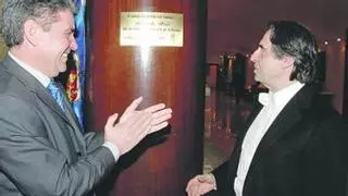 Muti descubre una placa de homenaje en el auditorio de Oviedo en 2007. Le aplaude el entonces concejal de Cultura, Alfonso Román López. / LNE