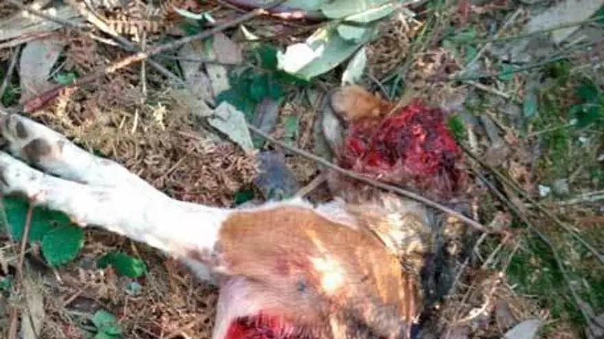 El cuerpo del perro "Nano" tras el ataque del lobo en Pravia. / G. MÉNDEZ